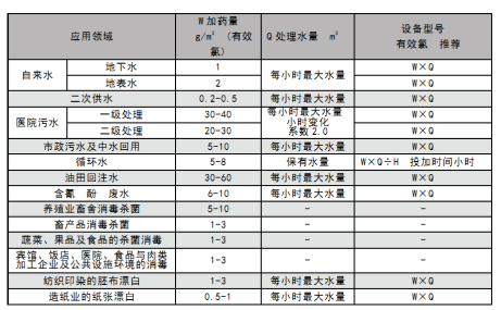 Reference parameter table of effective chlorine dosage for various water bodies (for reference)