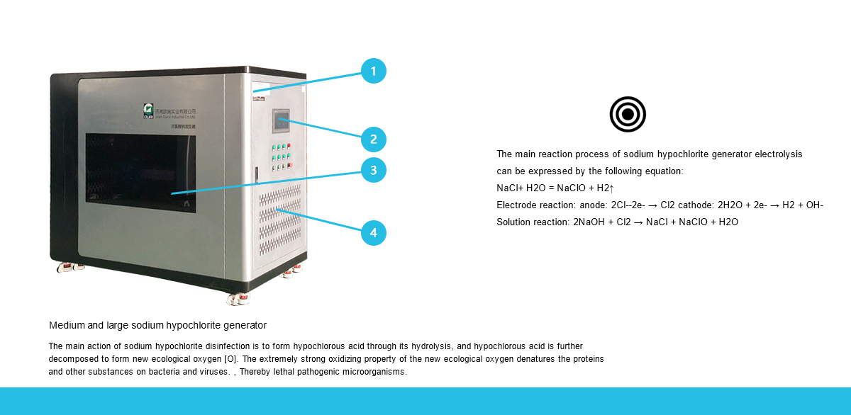 The main reaction process of sodium hypochlorite generator electrolysis can be expressed by the following equation: