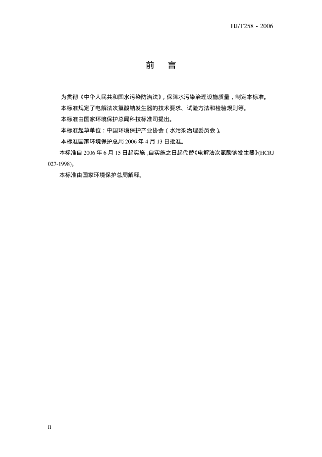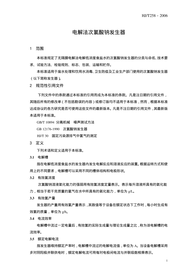 次氯酸鈉發(fā)生器行業(yè)標準
