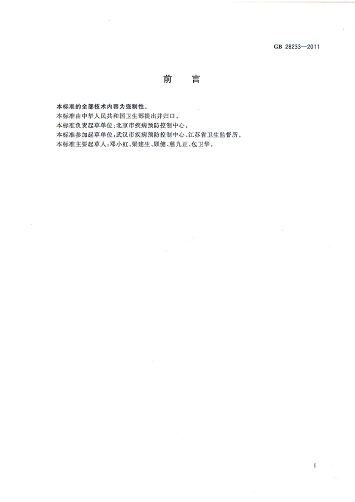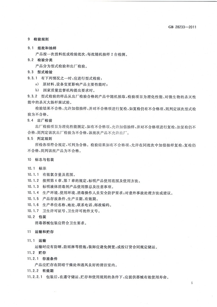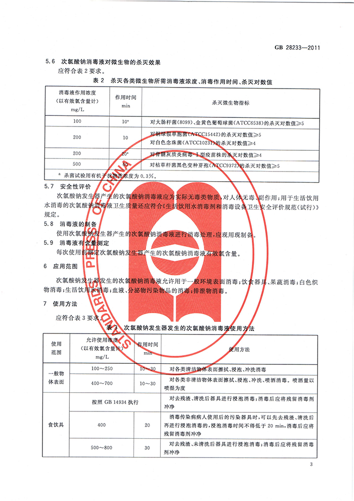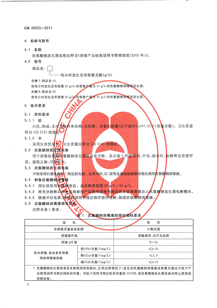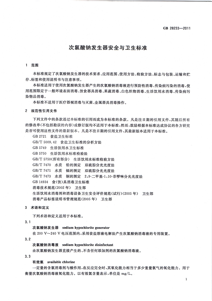 GB 28233-2011 次氯酸鈉發(fā)生器安全與衛(wèi)生標準