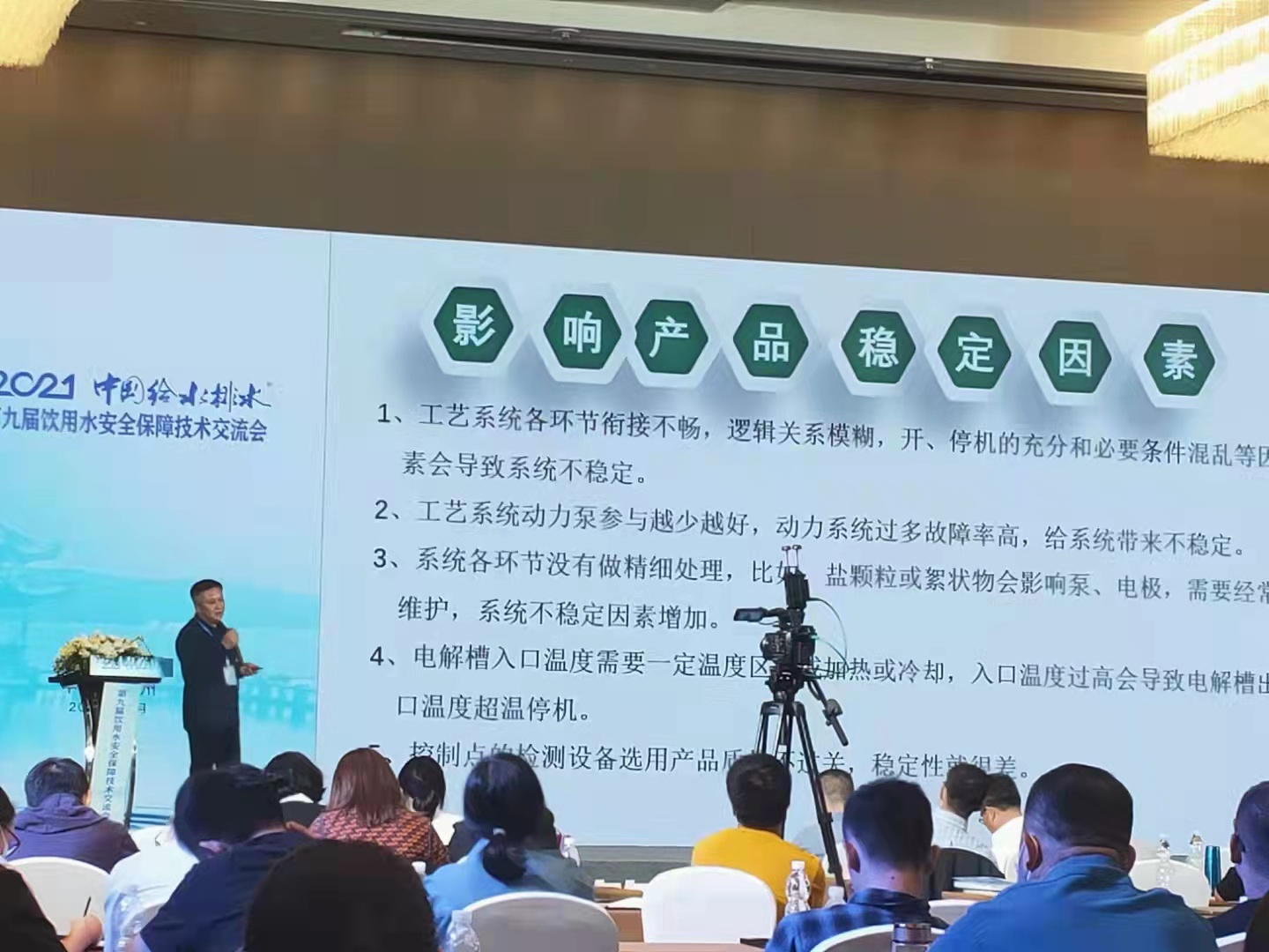 本次會議由袁建忠總經(jīng)理以“安全穩(wěn)定的次氯酸鈉發(fā)生器及電極性能判斷”為主題對我公司獨立研發(fā)的次氯酸鈉發(fā)生器在安全性、穩(wěn)定性、節(jié)能性等方面做了介紹,以及如何選擇電極及判斷電極的性能做了詳細(xì)說明,獲得業(yè)界人士一致好評。