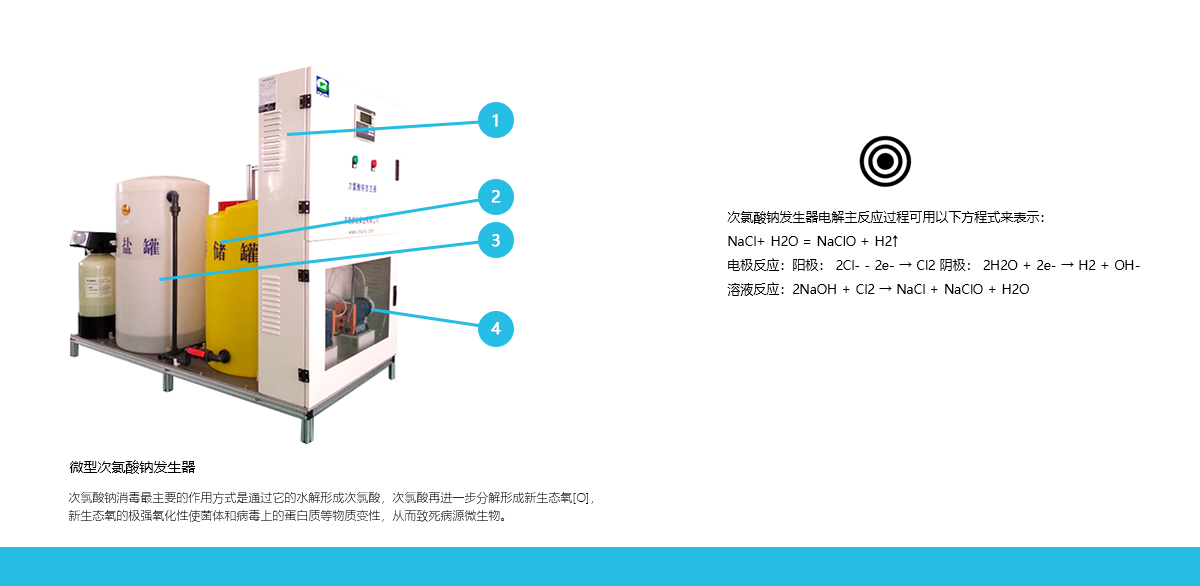 次氯酸鈉發(fā)生器電解主反應(yīng)過(guò)程可用以下方程式來(lái)表示: